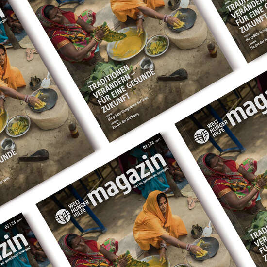 Schauen Sie auch mal bei der “Welternährung”, dem Fachjournal der Welthungerhilfe, vorbei. Hier finden Sie Meinungen und Artikel von Expert*innen und Wissenschaftler*innen zu aktuellen entwicklungspolitischen Themen mit Schwerpunkt auf Hunger- und Armutsbekämpfung. Oder werfen Sie einen Blick in unser Magazin, in dem Sie viele Informationen und Geschichten rund um unsere Arbeit und unsere Projekte finden.