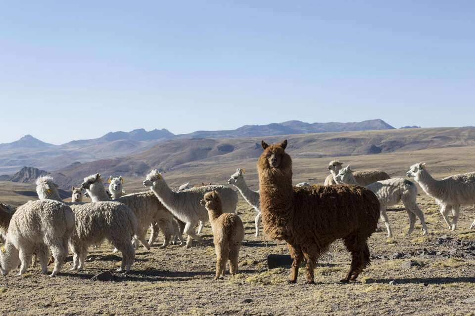 Hilda Machuca strickt. Pullover, die die Menschen hier auf eisigen 4.500 Metern gut gebrauchen können. Wenn sie die Kosten für die Wolle abzieht, bleiben ihr beim Verkauf 13 Euro für die Arbeit einer ganzen Woche. „Früher habe ich nie gestrickt“, sagt die kleine Frau. „Früher hat uns die Alpakazucht ernährt.“ Jahrhundertelang war dies die einzige, aber sichere Einkommensquelle der Quechua-Familien. Denn auf den kargen Höhen der Anden wächst kaum etwas anderes als Kartoffeln, Gerste oder Weidegras für die Alpakas. Auch wenn das Leben hart war, konnten die Familien früher vom Verkauf der Tiere, der Wolle und des Fleisches leben. „Wir waren arm, aber wir mussten nie hungern“, erinnert sich Hilda Machuca.