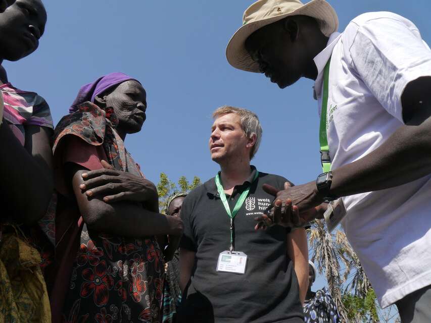 Die Menschen, mit denen ich im Lager spreche, werden von der Regierung als Feinde angesehen, weil sie dem Vizepräsidenten nahestehen sollen. Aber sie wissen zum Großteil noch nicht einmal, wer der Präsident und der Vizepräsident überhaupt sind, geschweige denn, worum gekämpft wird – um Macht und Rohstoffe. Die Ärmsten der Armen haben diesen Machtkampf am wenigsten zu verantworten, und sie leiden am meisten darunter. Ohne Unterstützung würden sie verhungern. Im Moment können wir nicht mehr machen, als ihnen das Überleben zu sichern. Und gleichzeitig erste Schritte zu gehen, damit die Menschen sich irgendwann einmal wieder selbst helfen können – zum Beispiel über Schulungen von landwirtschaftlichen Techniken für Hirten, die sie mit nach Hause nehmen können, wenn sie wieder in ihre Heimat zurückkehren. Im Lager sind sie einigermaßen sicher, es gibt ein Krankenhaus und Schulen. Und es gibt genug zu essen. Die Verteilungen, die die Welthungerhilfe im Lager und auch in den umliegenden Dörfern organisiert, laufen extrem professionell ab, es gibt keine Unruhe.