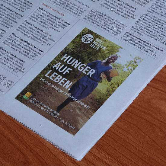 Sie möchten die Arbeit der Welthungerhilfe unterstützen und haben in Ihrer Zeitung, ihrem Unternehmensmagazin oder auf Ihrer Webseite ein wenig freien Platz? Dann helfen Sie uns, indem Sie eine Freianzeigen abdrucken oder einen Banner auf Ihrer Website platzieren.