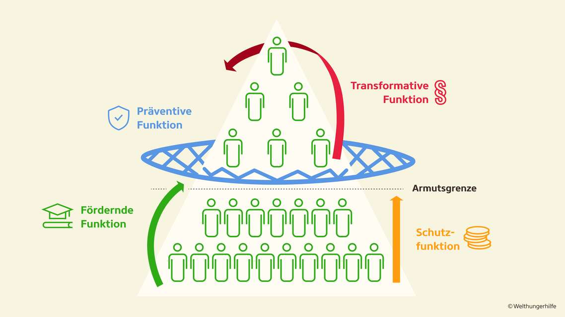 Durch soziale Sicherungsinstrumente sollen die Menschen im unteren Teil der Einkommenspyramide über die Armutsgrenze gehoben werden.