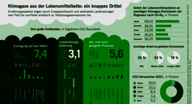 Tierhaltung, Energieverbrauch, Rodungen: Vom Feld bis zum Teller tragen Ernährungssysteme weltweit zu klimaschädlichen Treibhausgasen bei.