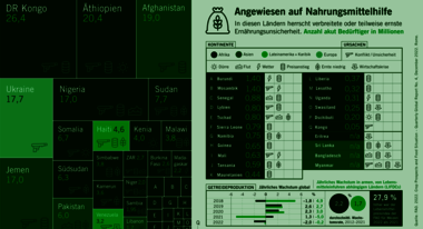 In diesen Ländern herrscht verbreitet oder teilweise akute Ernährungsunsicherheit. Die weltweite Versorgungslage bleibt angespannt.