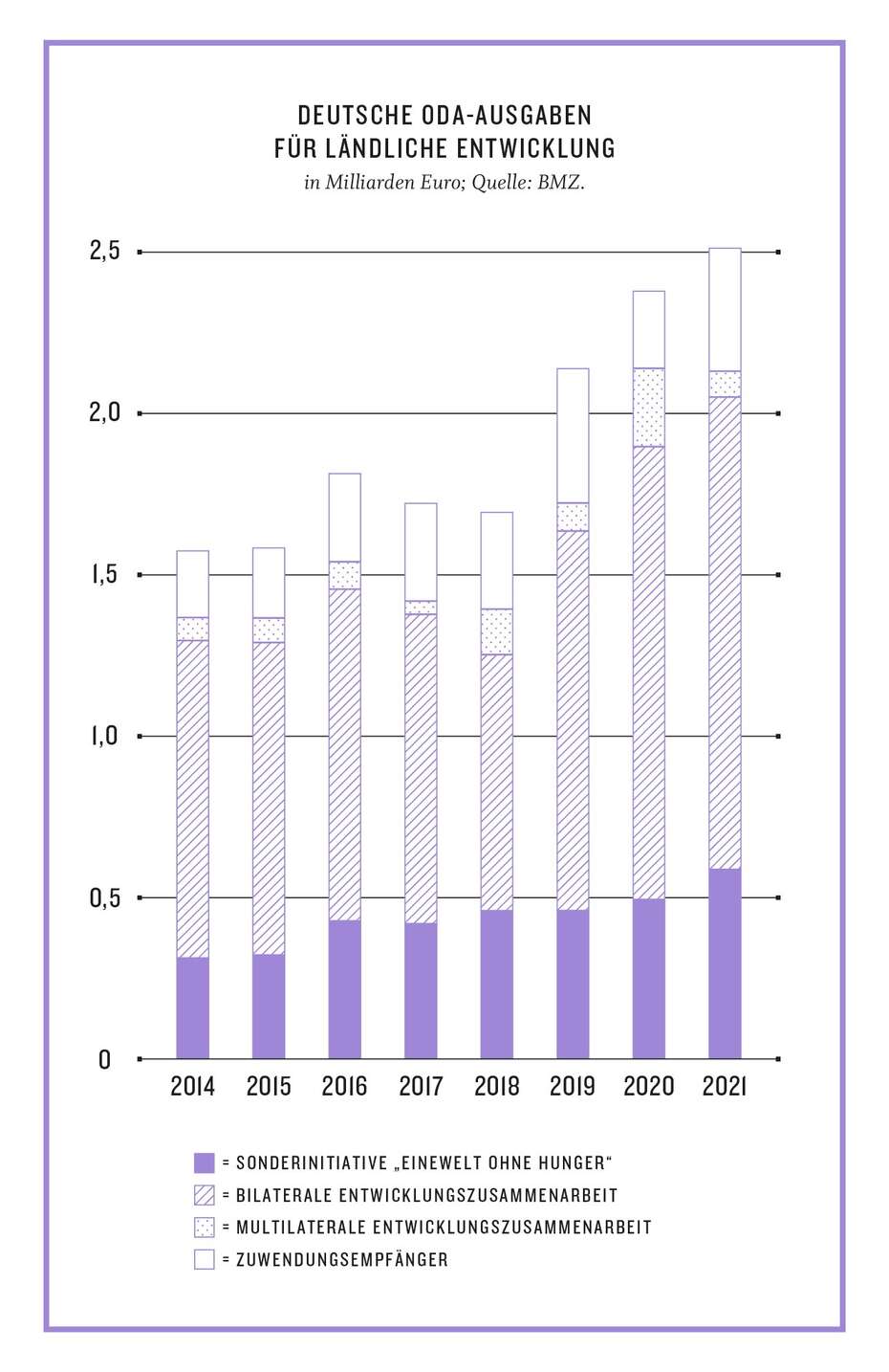 Für den Themenbereich „ländliche Entwicklung“ standen nach BMZ-Angaben im Jahr 2021 2,5 Mrd. Euro bereit; ein Höchststand, aber auch dort waren für 2022 ursprünglich Kürzungen geplant, die jedoch kurzfristig durch Sondermittel kompensiert wurden. Generell kritisieren terre des hommes und Welthungerhilfe die Intransparenz der Zahlen: Weltbank, OECD und BMZ nutzen jeweils andere Berechnungsgrundlagen bei der Ermittlung der Ausgaben für ländliche Entwicklung, Ernährungssicherung und Landwirtschaft. Das müsse sich ändern, so die beiden Organisationen.