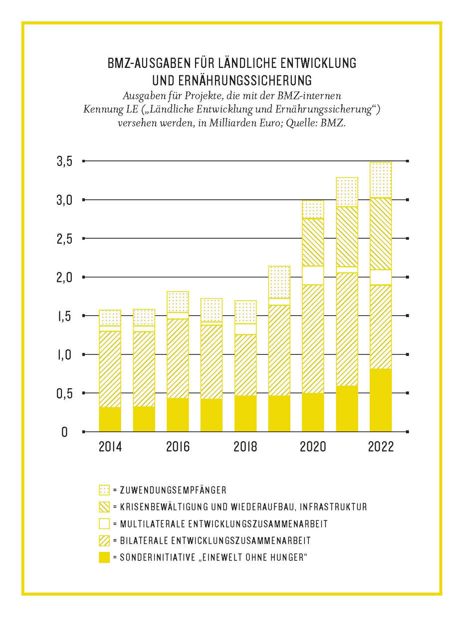 Wird ein solches System von zunehmenden Klimawandelfolgen getroffen und muss im Verhältnis zur urbanen Bevölkerung mit immer weniger Menschen immer mehr Nahrungsmittel produzieren, dann ist der Kollaps eines solchen Systems die logische Folge. Der Kompass drängt daher nachdrücklich darauf, in der Entwicklungspolitik auch die Landwirtschaft und die ländliche Entwicklung gerade in Subsahara-Afrika als Zunkunftssektor zu verstehen und zu behandeln.
