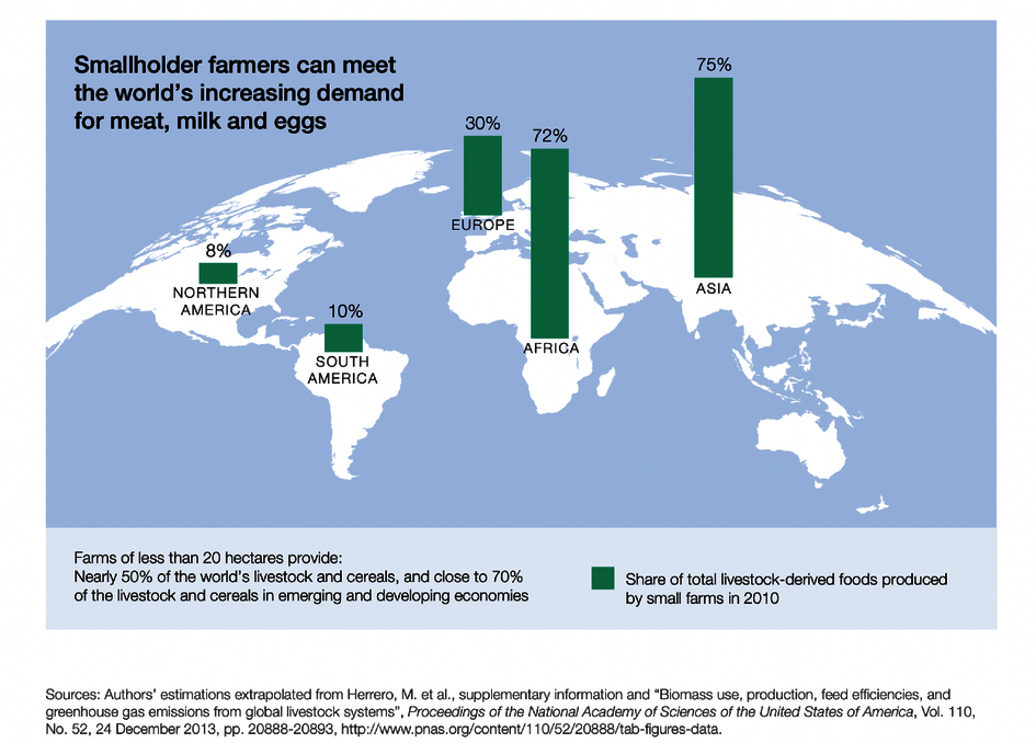 Im Schnitt stammen 40 Prozent des landwirtschaftlichen Bruttoinlandsprodukt in Afrika aus der Tierhaltung, ein großer Wirtschaftszweig. Eine Studie in sieben Ländern zeigte, dass zwei Drittel der Haushalte Tiere halten und damit bis zu 20 Prozent ihres Haushaltseinkommens generieren. In Kenia, schafft der Tiersektor Arbeit für 13,5 Prozent der Beschäftigten. Wegen der Potenziale für sowohl Ernährung und Entwicklung fördern viele Projekte gezielt die Tierhaltung. Die deutsche Gesellschaft für Internationale Zusammenarbeit (GIZ) unterstützt z.B. mit ihren „Grünen Innovationszentren“ die Milchwirtschaft in Kenia, Sambia und Tunesien – in Benin und Kamerun die Geflügelwirtschaft.