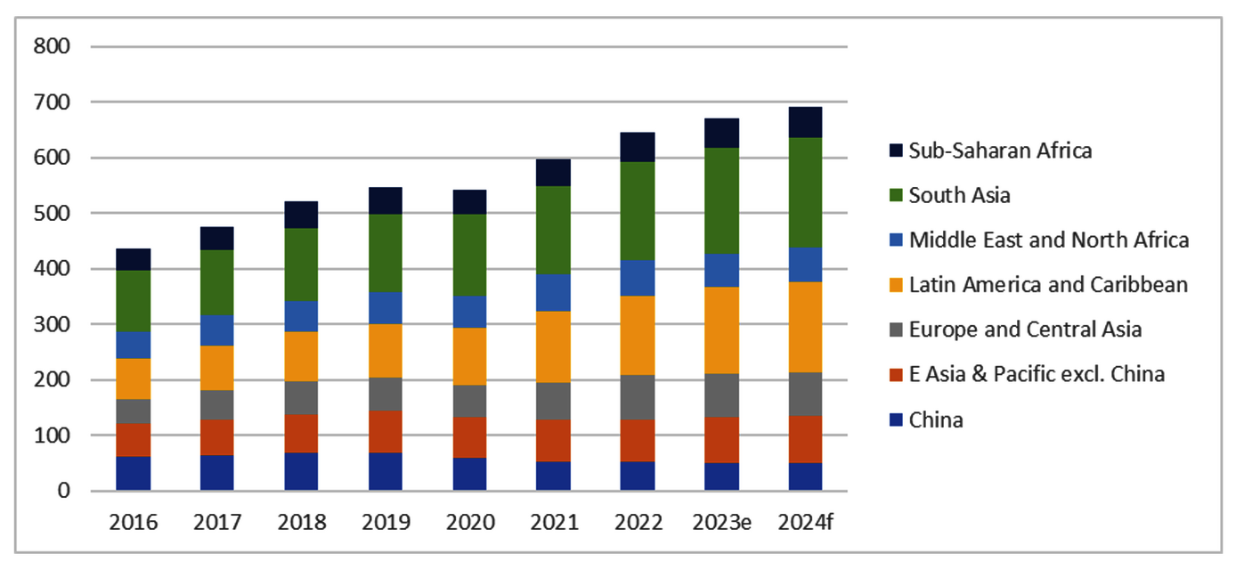 Schätzungen und Projektionen zu Rücküberweisungen in Regionen mit niedrigem und mittlerem Einkommen, 2016-2024