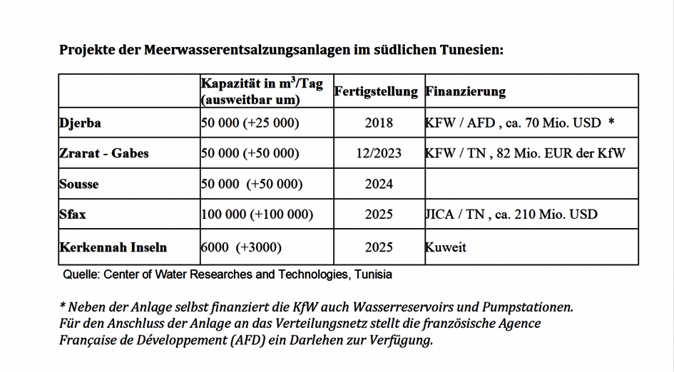 Lange vor Saieds Amtszeit begann die KfW den Bau der ersten (nicht solarbetriebenen) Meerwasserentsalzungsanlage auf der tunesischen Urlaubsinsel Djerba mit 60 Mio. Euro zu fördern, um die Wasserversorgung und die Gesundheit von Einwohnern und Touristen zu gewährleisten. Die Entsalzungsanlage mit einer Kapazität von 50.000 Kubikmeter/Tag soll vor allem während der Sommermonate die sehr angespannte Wasserversorgung der Urlaubsinsel Djerba sichern. Die Anlage ist für eine spätere Erweiterung auf 75.000 Kubikmeter/Tag ausgelegt, sodass der Wasserbedarf der Bevölkerung und der wirtschaftlich wichtigen Tourismusindustrie nachhaltig sichergestellt werden kann. Die 200.000 Einwohner der Insel und die nochmal so vielen Touristen werden so „mit hygienisch einwandfreiem Trinkwasser versorgt“, heißt es in einer Mitteilung der KfW.