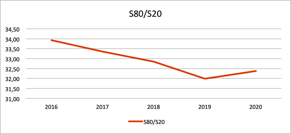 Für eine angemessene Schätzung der Ungleichheit nach dem zweiten Konzept von Milanovic bietet sich die globale S80/S20-Quote (auch Quintil-Verhältnis genannt) an. Sie vergleicht das Einkommen des reichsten Fünftels der Weltbevölkerung mit dem der ärmsten 20 Prozent. Dieses Verhältnis liegt in Deutschland und auch in den EU-Mitgliedsstaaten im Durchschnitt bei etwa fünf, was bedeutet, dass die reichsten 20 Prozent ein fünfmal höheres verfügbares Einkommen haben als die ärmsten 20 Prozent.