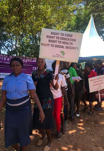 Naomi hat erst durch die Aufklärungsarbeit der Teams von Rural Outreach Africa (ROA) und The Institute for Social Accountability (TISA) erfahren, dass eine ausreichende und ausgewogene Ernährung ein Menschenrecht ist und kein Privileg einiger Weniger. Sie ist eine der besonders engagierten Dorfbewohner*innen, die nun als ‚Botschafter*in' für das Recht auf Nahrung einsteht, und hat eine Gruppe von Menschen mit Behinderungen gegründet, die sich gemeinsam für ihre Anliegen einsetzen.