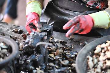 Risiken wie im Anbau und der Ernte der Cashews lauern auch bei der Weiterverarbeitung. Die meisten der rohen Cashew-Nüsse werden aus Westafrika nach Indien und Vietnam exportiert. Zahlen aus 2018 zufolge werden in Vietnam und Indien zusammen ganze 92 Prozent aller rohen Cashew-Nüsse in Kerne verwandelt.
